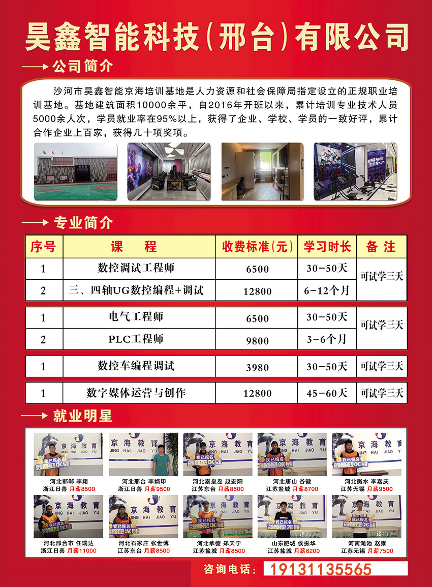 邢台京海学校数控专业、plc编程、电气自动化专业招生报名了