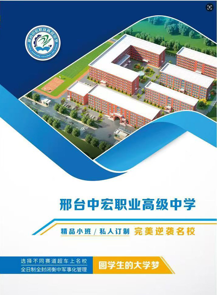 邢台市中宏职业高级中学(原中英实验学校),是隶属于邢台市教育局主管的全日制职业高级中学,实行全住宿、封闭式半军事化管理。